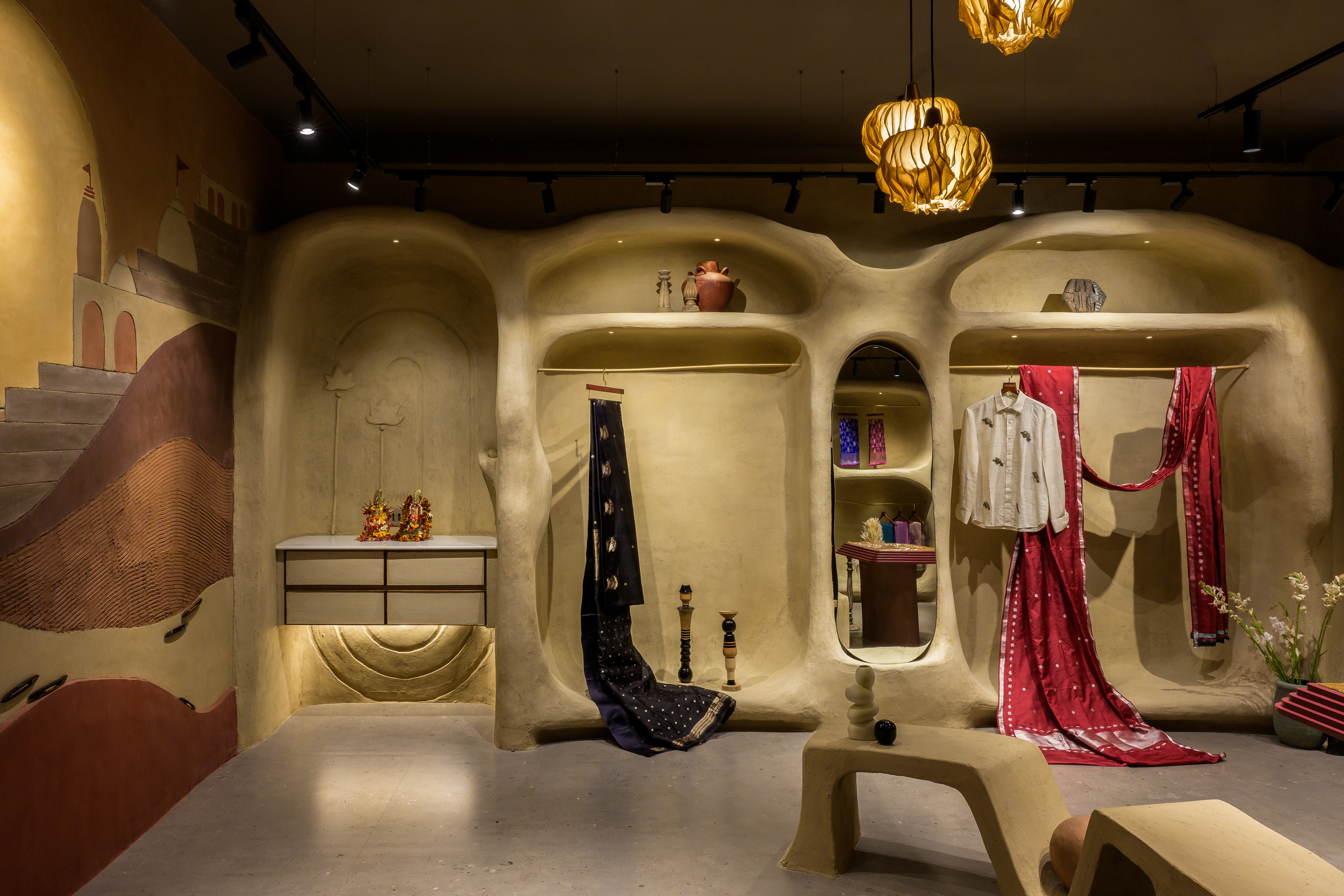 Showroom is hand-sculpted in mud, lime and cow dung....